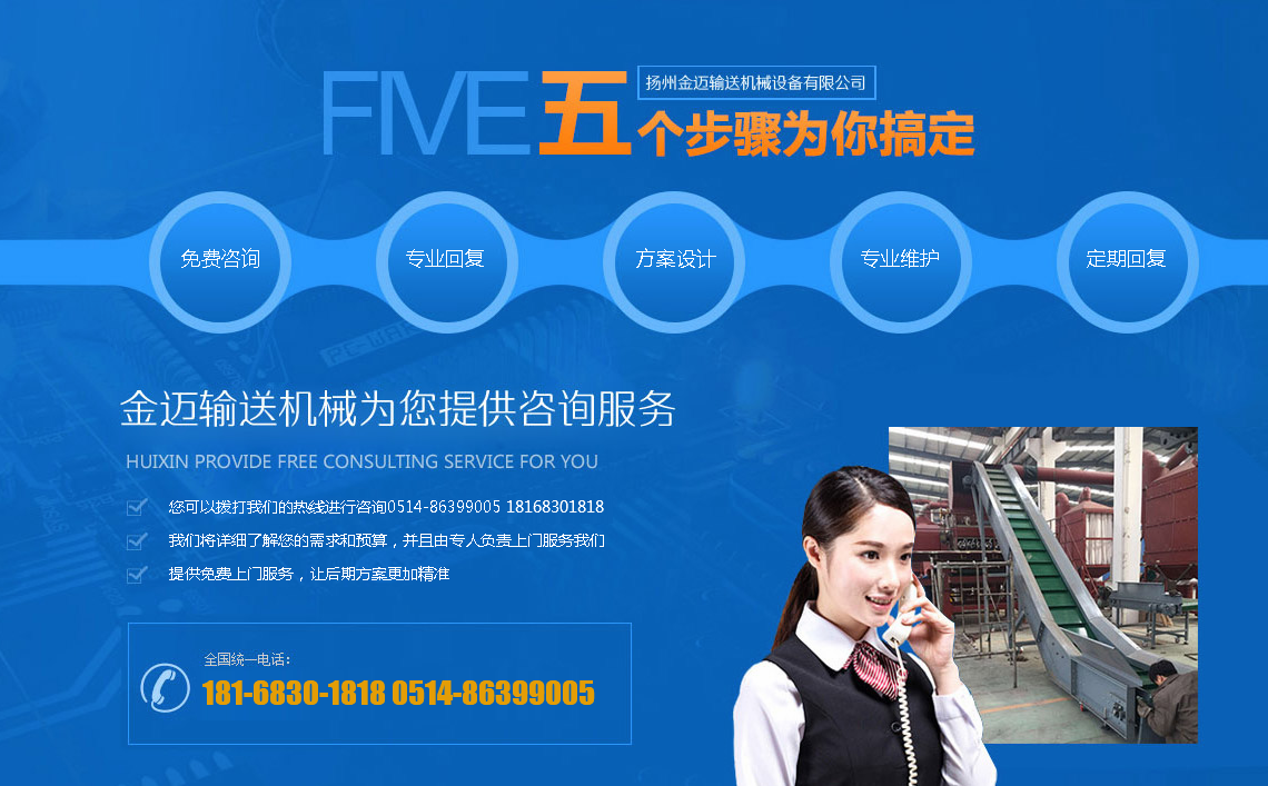 扬州金迈输送机械设备有限公司坐落于江都区郭村镇北工业园。公司专业从事于链板输送机、网带输送机、皮带机、转弯输送机、爬坡输送机、Z型、C型垂直提升机、斗式提升机、非标设备制造、钢结构制造及设备安装。公司致力于提高产品性能、服务质量、员工素质和管理水平, 扩大销售网络、供应渠道和人才储备。先进齐全的金属加工设备和塑料成型设备配之以成熟的工艺规范,产品质量和交货速度得到了充分的保障。凭借着先进的专业技术手段,严格的质量控制,热诚的售后服务同国内各大食品生产及食品机械制造的知名建立长期固定的业务关系,部分产品还销往美、欧、非及东南亚各国。产品质量及商业信誉深受广大客户好评。